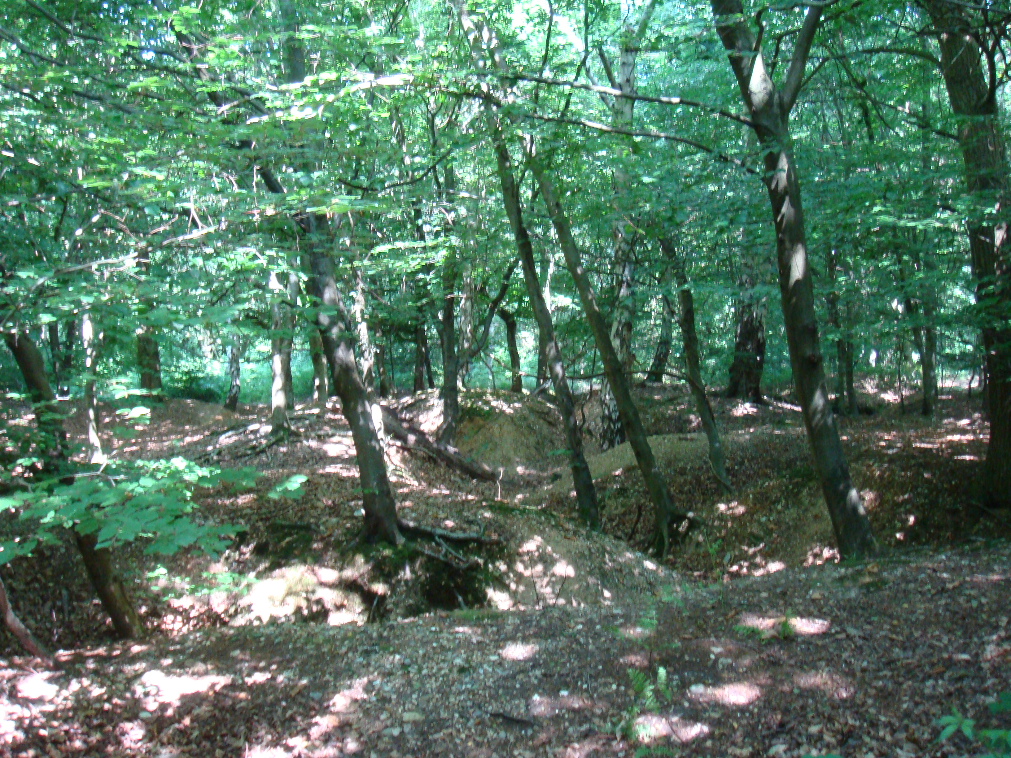 The trenches sit up on a ridge and are in quite a tranquil and sunny spot. Although you do wonder if the powers that be were perhaps being very optimistic by putting the trenches up on a ridge with an excellent view of the enemy to the west. There isn’t a great deal of information about how the area was used, but it appears that the Royal Engineers were one of the groups that trained there. So I imagine they practiced their trench building, whereas infantry were drilled in trench warfare etc.