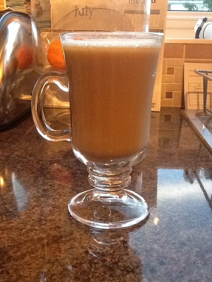 I made many attempts to filter out the remaining butter before giving in and heating the mixture back up in the microwave. The result was that I ended up with something that tasted better than the original beer I’d made some days earlier. This is because, as well as removing about half the butter I had also accidentally filtered out some of the spices, namely the cloves. So, if you are going to make this for yourselves I would consider; a). halving the amount of butter in the recipe, b). burning off some of the alcohol, as some of these dark ales are very strong, and c). halving the amount of cloves and maybe increasing the amount of ginger or nutmeg, depending on your taste.